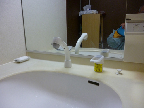 洗面化粧台シャンプー混合栓取替工事