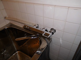 既設の浴室混合栓(2バルブ式)が老朽化し漏水して又バルブの開閉が硬くてしにくくなったので、TOTOのTMGG40Eサーモスタットシャワーリングハンドル式混合栓に取替えました。お客様は以前より使い勝手がよくなったと、大変よろこんでいただきました。