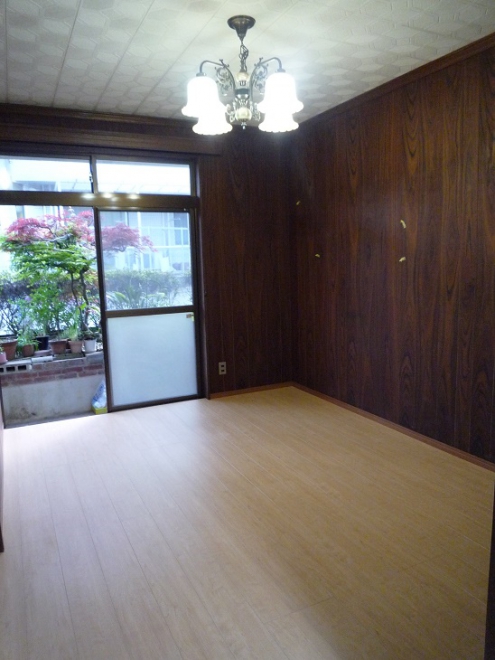 ダイケンおもいやりフロア(ミルベージュ)を施工しました。入口の段差解消でバリアフリーになりました。