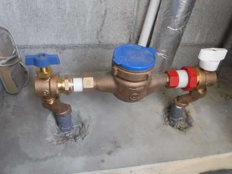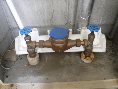 満了メーター交換できないため漏水部修理、メーター前後バブル交換