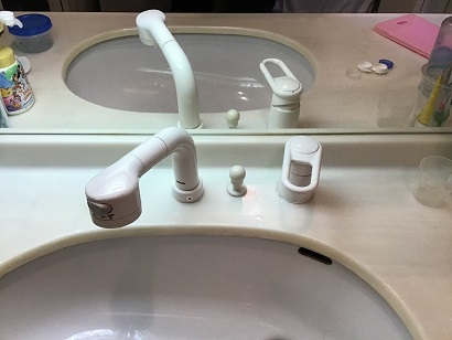 洗面化粧台混合水栓取替工事