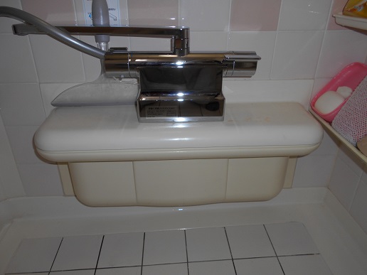 既設の浴室シャワー混合水栓が、老朽介して漏水していたので、TOTOの台付きサーモスタット混合水栓TBV03423Jに取替しました。