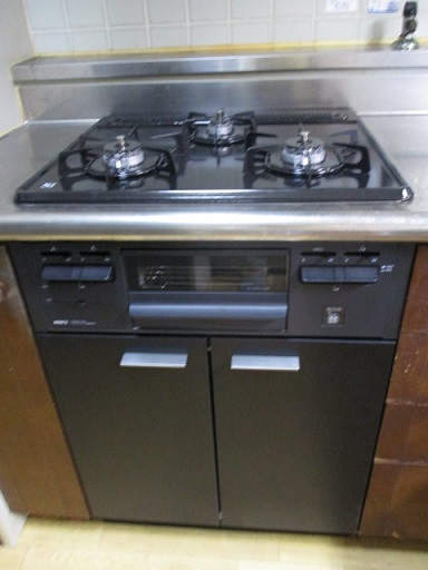 既設のガスコンロが老朽化してきたのでノーリツのビルトインコンロメタルトップシリーズN3GQ2RVQ1とノーリツ厨房関連キャビネットNLA60に取替させていただきました。