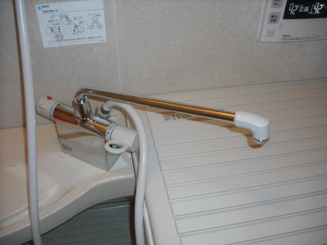 LIXIL シャワーバス水栓、デッキタイプに交換させていただきました。