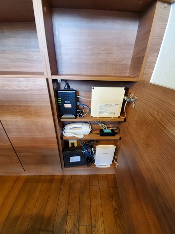 クリナップのキャビネットの中にルーターを収納できるように、コンセントを作り