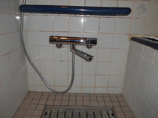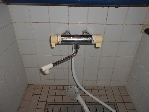 浴室壁付サーモスタット混合水栓取替工TOTOのTBV03401Jに取替しました。