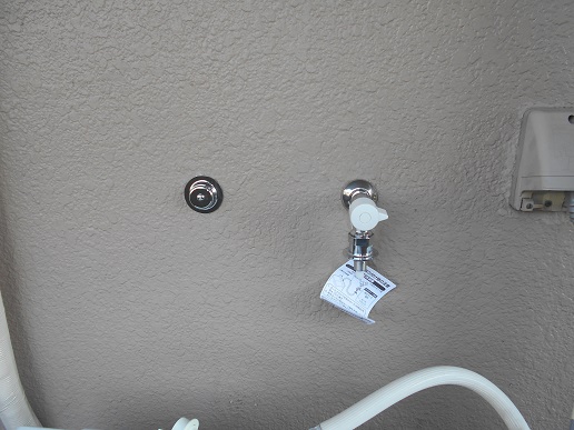 既設の2ハンドル洗濯機用混合水栓から単水栓TOTOの緊急止水弁付き横水栓ピタっとくんTW11Rに取り替え