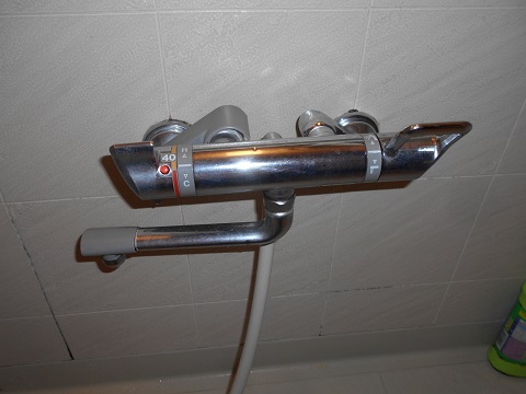 TOTOの浴室壁付サーモスタット混合水栓TBV03401Jに取替しました。