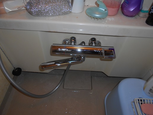 浴室2ハンドルシャワー混合水栓からTOTOの浴室シャワーサーモスタット混合水栓TBV03401Jに取替しました。