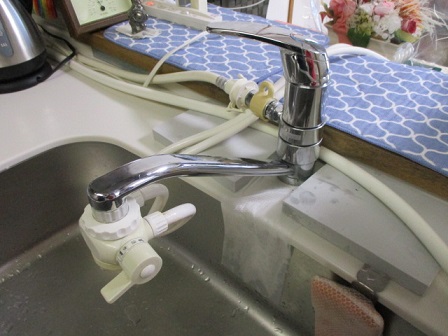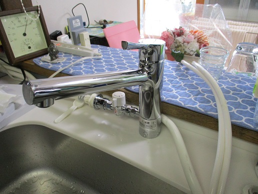 TOTOの食器洗い乾燥機分岐口付きタイプシングル混合水栓TKS05309Jに取替ました。