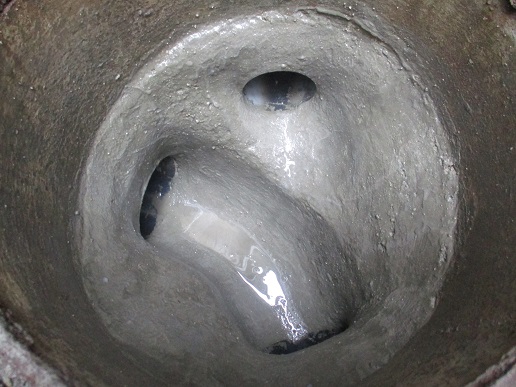 下水の排水会所桝が老朽化して管底が陥没していたので、インバート改善工事をしました。