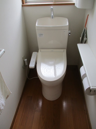 既設のトイレが老朽化して漏水していたので、TOTOの組み合わせ便器ピュアレストQRとウオシュレットSBTCF6632に取替しました。