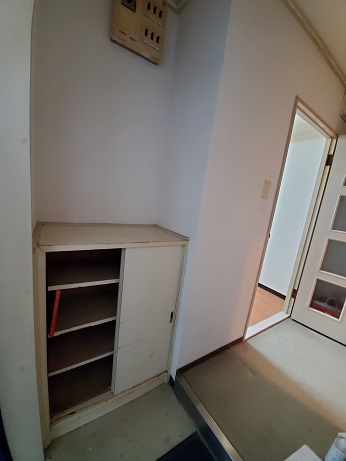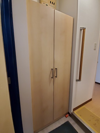 既設の靴箱は小さく入らないので、セミオーダーで新しい靴箱を設置しました。