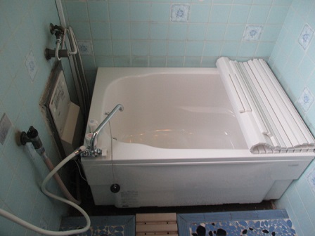 マンション外壁貫通設置給湯器と浴槽取替工事