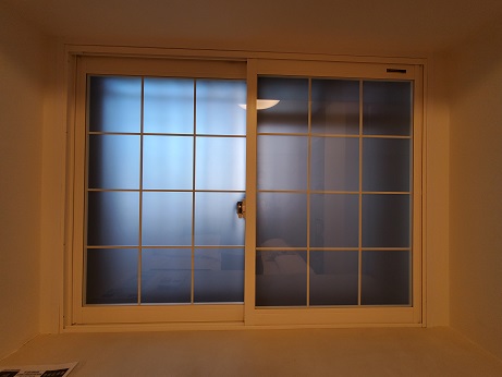 今までの内窓はカーテンをつけないと外から見えてしまうので、すりガラス調のプラマードUに取替えました。