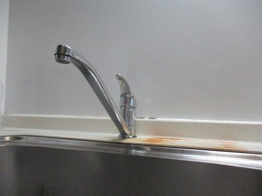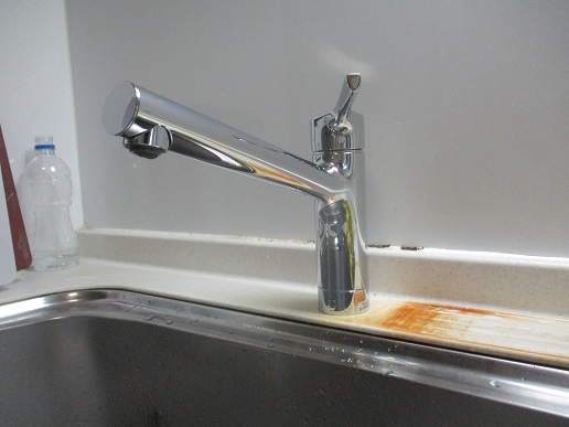 既設のキッチン混合水栓が老朽化して漏水していたので、TOTOのシングル混合水栓TKS05301Jに取替しました。