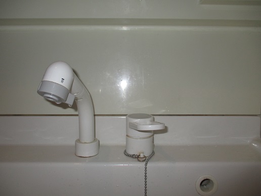 既設の洗面化粧台シャワー混合水栓が、老朽化して漏水していたので、
