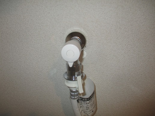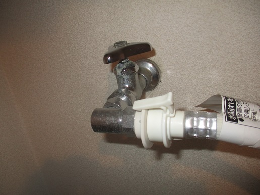 既設の洗濯機水栓が老朽化して漏水していたので、TOTOの洗濯機横水栓(緊急止水弁付き)TW11Rに取替しました。