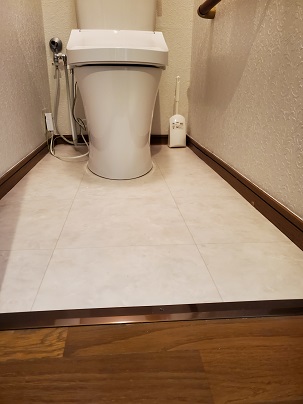 トイレリフォーム工事 トイレ床、コンパネ貼替・点検口 床クッションフロア貼替工事 壁・天井・クロス貼替工事