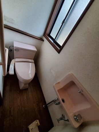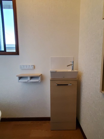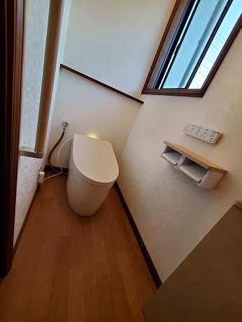 TOTOウォシュレット一体型便器ネオレストAS2 レストルームドレッサーコンフォートシリーズ、カラーはパステルアイボリーに取替ました。紙巻き器、手洗い部分には補強をしてから施工しました。あと床クッションフロア貼替、壁天井クロス貼替工事です。