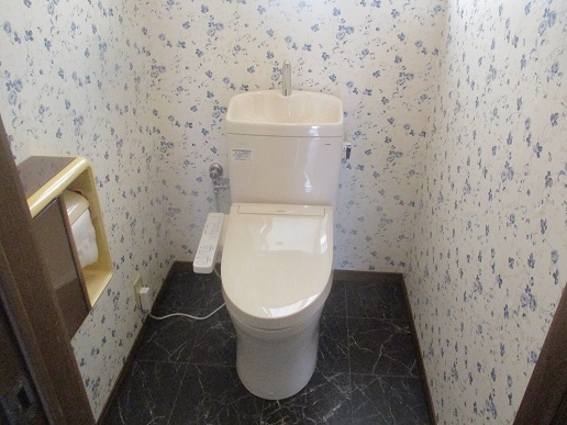 TOTOのピュアレストQRとウオシュレットSBに取替し床クッションフロアと壁クロスを貼替えました。