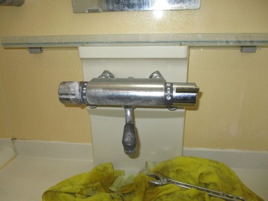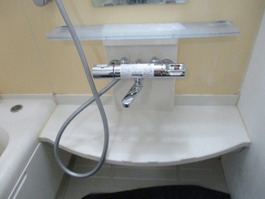浴室壁付シャワー混合水栓が老朽化して漏水していたので、LIXILサーモスタット付きシャワーバス水栓BF-KA147TSGに取替しました。