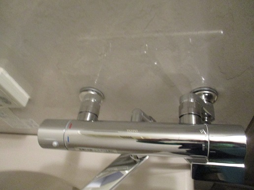 既設の浴室壁付混合水栓が老朽化して漏水していたので、TOTOの壁付サーモスタット混合水栓TBV03401Jに取替しました。