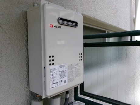 既設の給湯器が老朽化して漏水していたので、ノーリツのガス給湯器家庭用ユコアGQ屋外壁掛型16号GQ-1639WS-1に取替しました。