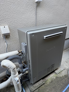 取付から11年経った給湯器にエラーが出たので取替させていただきました。 既設の給湯器より少し小さくなったのと、リモコンの液晶部分はいろんな柄を選べるようになっていて見やすいようにブラックにしました。