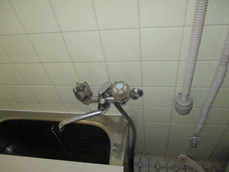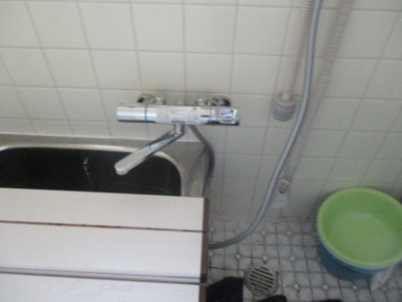既設の浴室壁付2ハンドル式混合水栓が老朽化して漏水していたので、LIXILのサーモスタット付シャワーバス水栓BF-KA145TSGに取替しました。