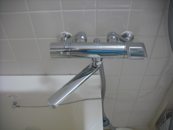 ツーバルブ混合栓からTOTOのTMGG40Rのサーモンスタット混合栓に取替ました。従来のシャワーに比べ約35%節水しながら浴び心地よいエアインシャワーです。