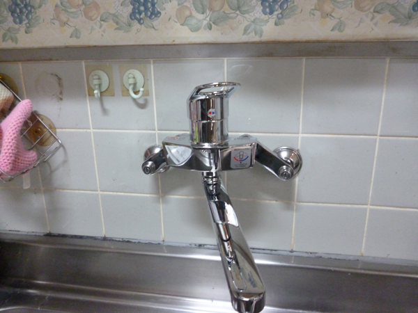 既設のキッチンの混合栓をTOTOのTKGG30ECシングルレバー混合栓に取替しました。